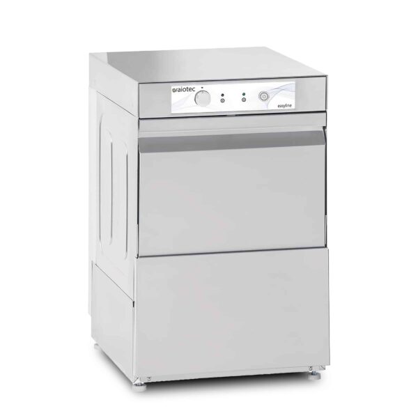 The height-adjustable wash arms ensure optimal cleaning, while the integrated dosing pumps for rinse aid and rinse aid ensure hygienic results. Thanks to the built-in drain pump, you place the machine where it suits you best, even without a direct floor drain. Safety is guaranteed with the thermostats in tank and boiler, and the anti-return valve prevents problems with backflowing water.