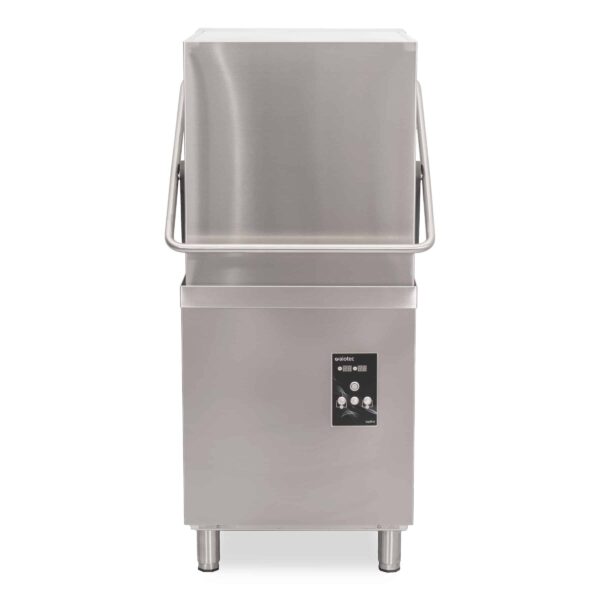 The stainless steel Asber Profi-line passthrough dishwasher is a professional hood rinser for the hospitality industry with a modern digital LED display and three adjustable washing programs (90, 120, 180 seconds and a manual endless cycle). It washes up to 40 baskets per hour and is equipped with an anti-return valve, safety thermostat, adjustable legs and built-in drain and soap pumps. It features stainless steel wash arms, a generous feed height, and comes with plate basket, universal basket and cutlery basket. Suitable for 400V connection and comes with a 12-month warranty.