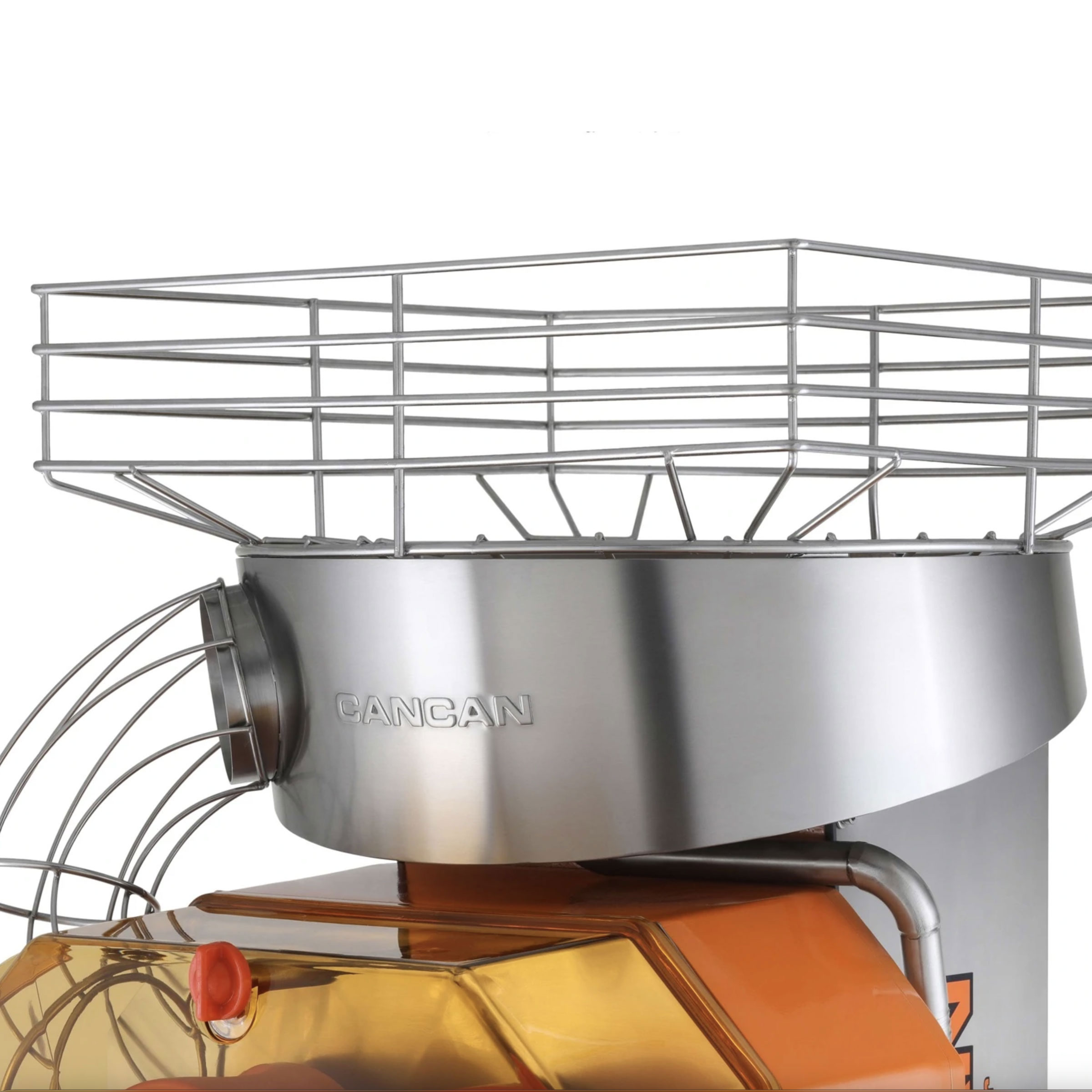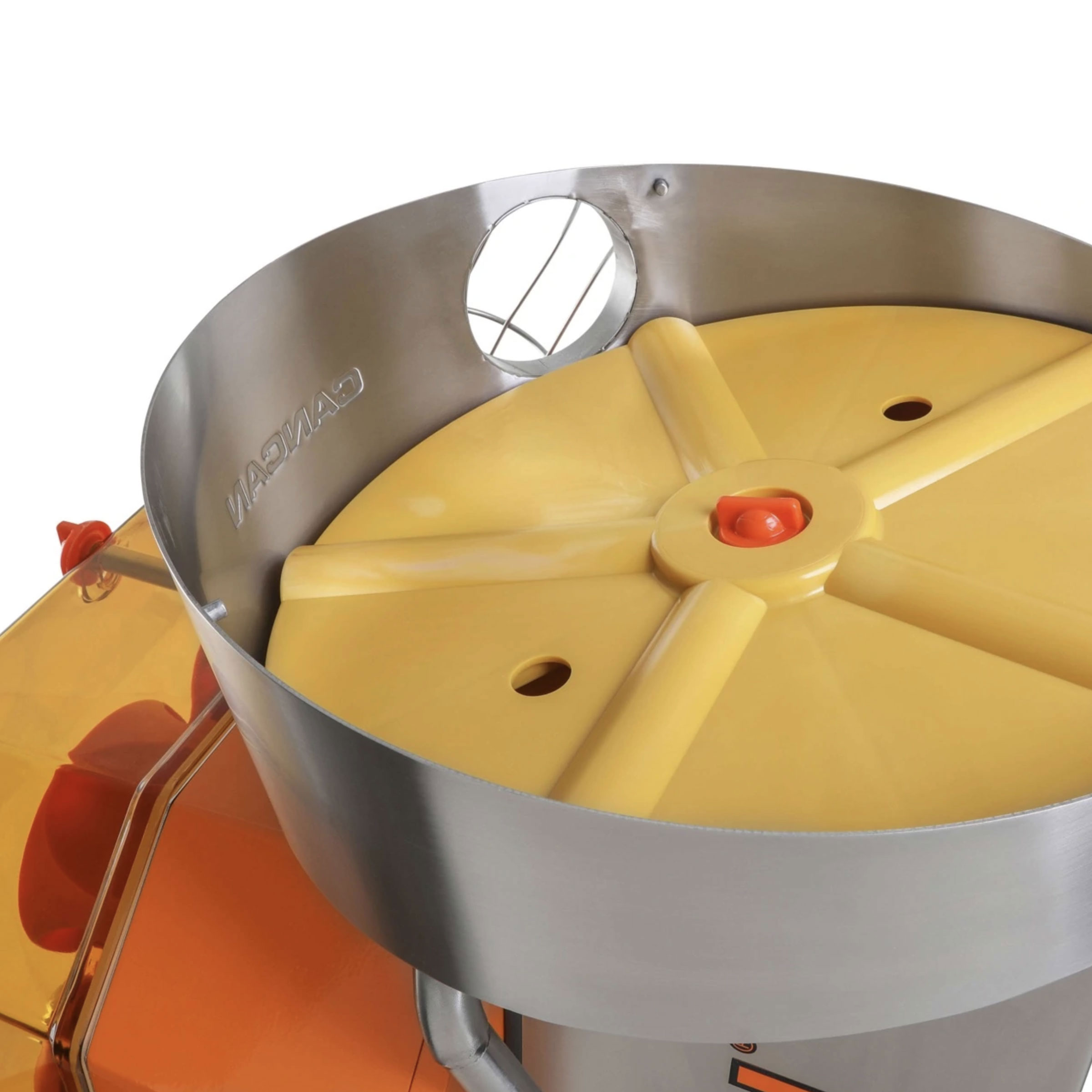 The front hood is made of durable polycarbonate and prevents juice splashing. Thanks to the safety switch on the hood, the machine will not operate if the hood is not in place. This ensures a safe pressing process without causing any work accident.