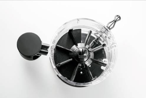 The funnel is made of co.polyester and is therefore unbreakable and non-deformable, through the valve at the top it is easy to refill the beans. Also, the hopper is dishwasher safe up to 90°C making cleaning easy and quick.