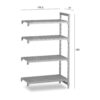 With this extension kit – consisting of one upright and four sturdy shelves – you easily extend an existing HCB basic shelving unit. The system is modular, easy to maintain and resistant to extreme conditions.