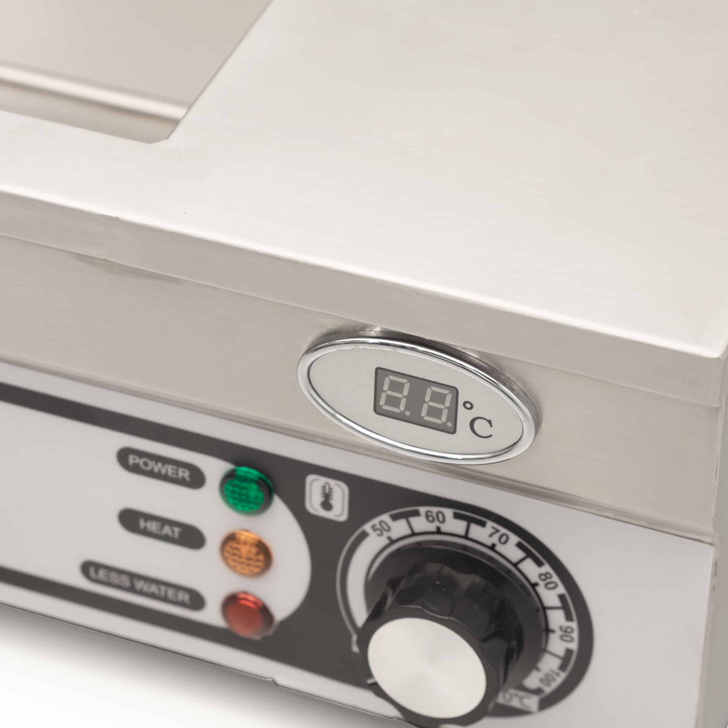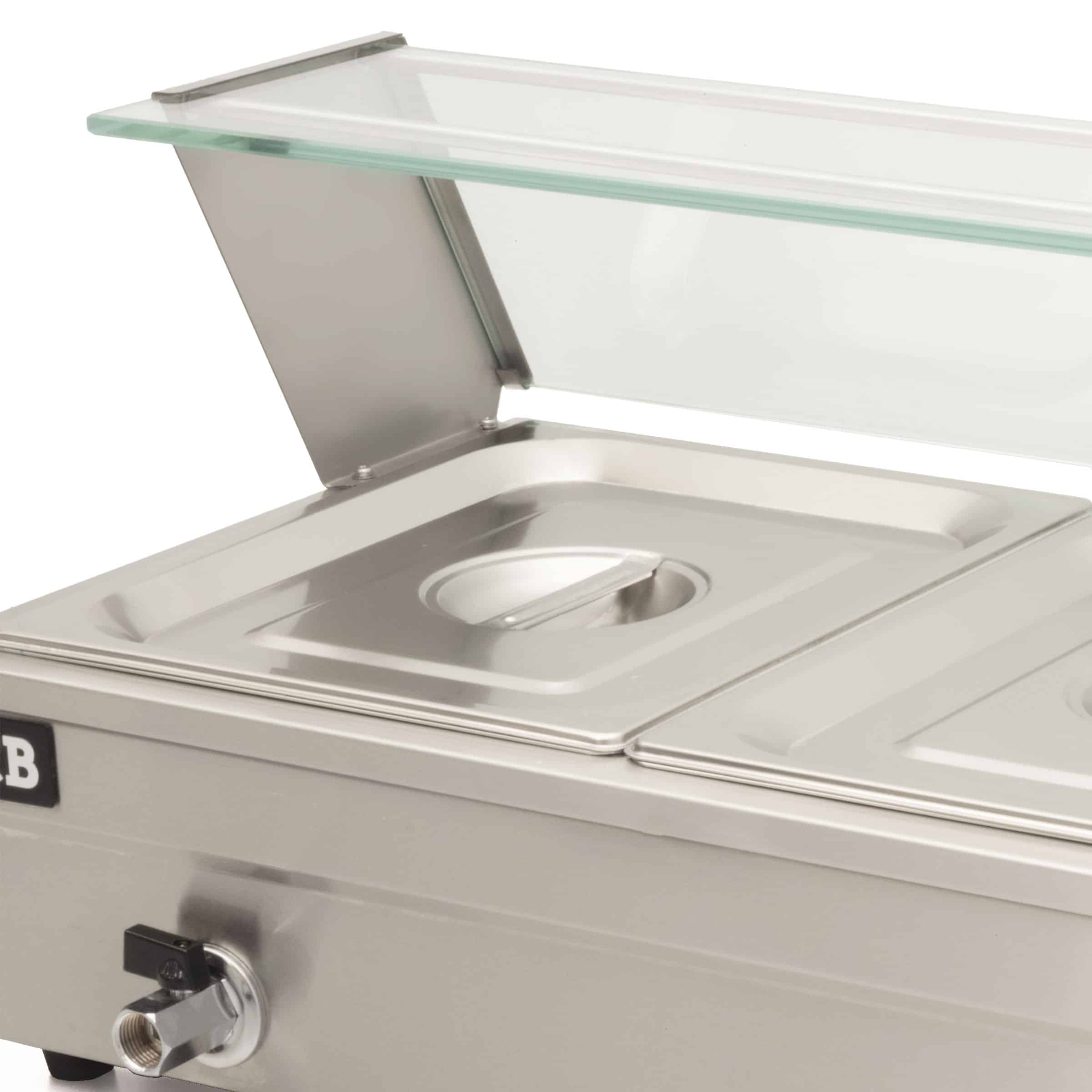 The unit is made of high-quality stainless steel and has a large capacity of 3x 1/2 gastronorm. This provides enough space to keep a variety of products warm. In addition, the Bain Marie’s included lid keeps food from drying out or burning, keeping your dishes fresh and flavorful.