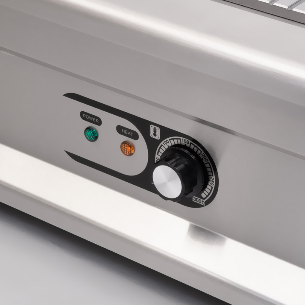 Thanks to the powerful 400volt connection, the griddle heats up quickly and stays at the right temperature constantly, allowing you to achieve perfect results. The stainless steel construction makes the griddle durable and easy to clean.