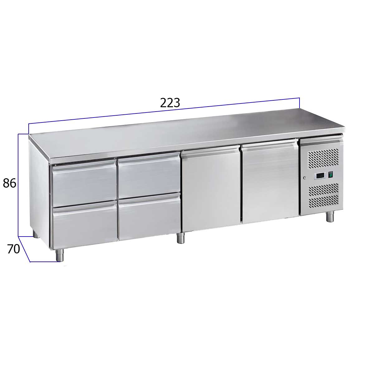 HCB Basic-line Refrigerated Workbench – 4 drawers – 2 doors – 223 cm – 230V – stainless steel