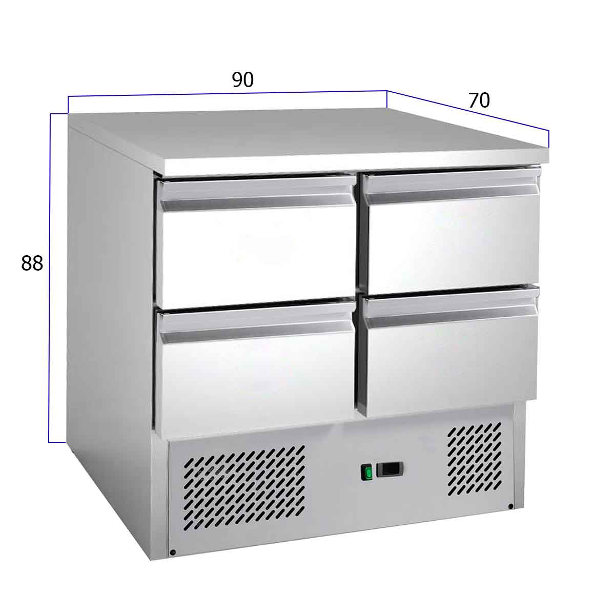HCB Basic-line Refrigerated Workbench – 4 drawers – 90 cm – 230V – stainless steel