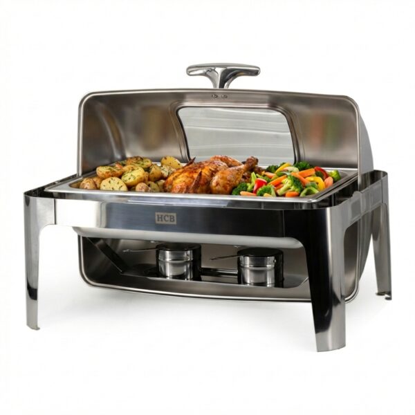 The hospitality industry is all about presentation, convenience and top quality. With this stylish chafing dish with rolltop and viewing glass, your dishes are not only perfectly warm, but also attractively presented. Thanks to the handy viewing glass, guests can immediately see what is being served, without having to open it unnecessarily – saving heat loss and time. The rolltop lid makes serving extra easy, even during the busiest peak times. This ensures smooth service and a neat appearance at any buffet, event or catering job.