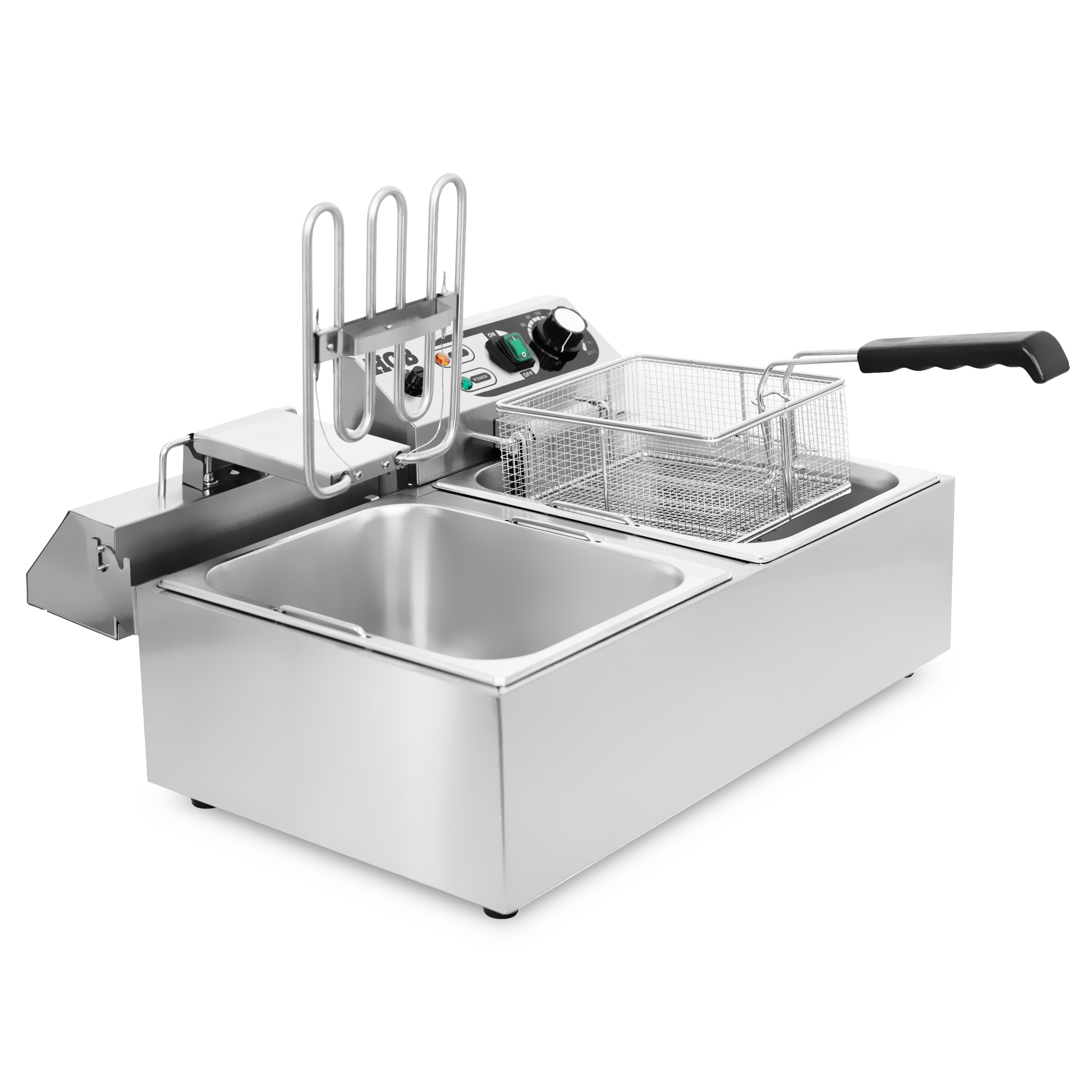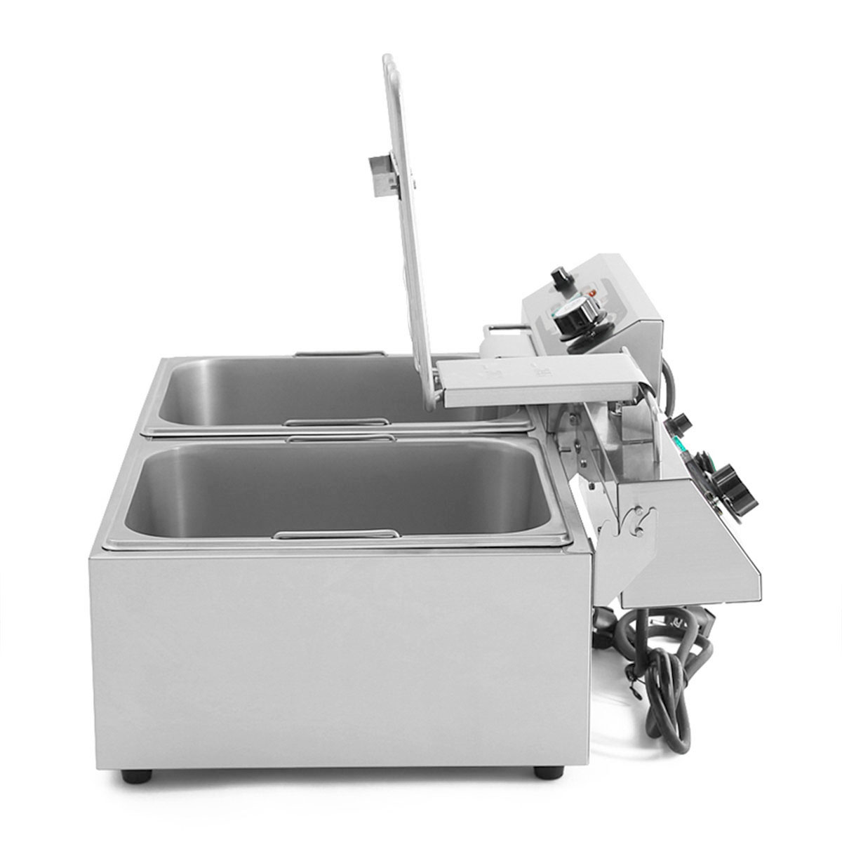 This deep fryer with a capacity of 2 x 10 liters is ideally suited for the professional kitchen. Ideally suited for frying larger quantities at once. The fryer is perfect for frying different types of food such as fresh chips, vegetables, snacks.