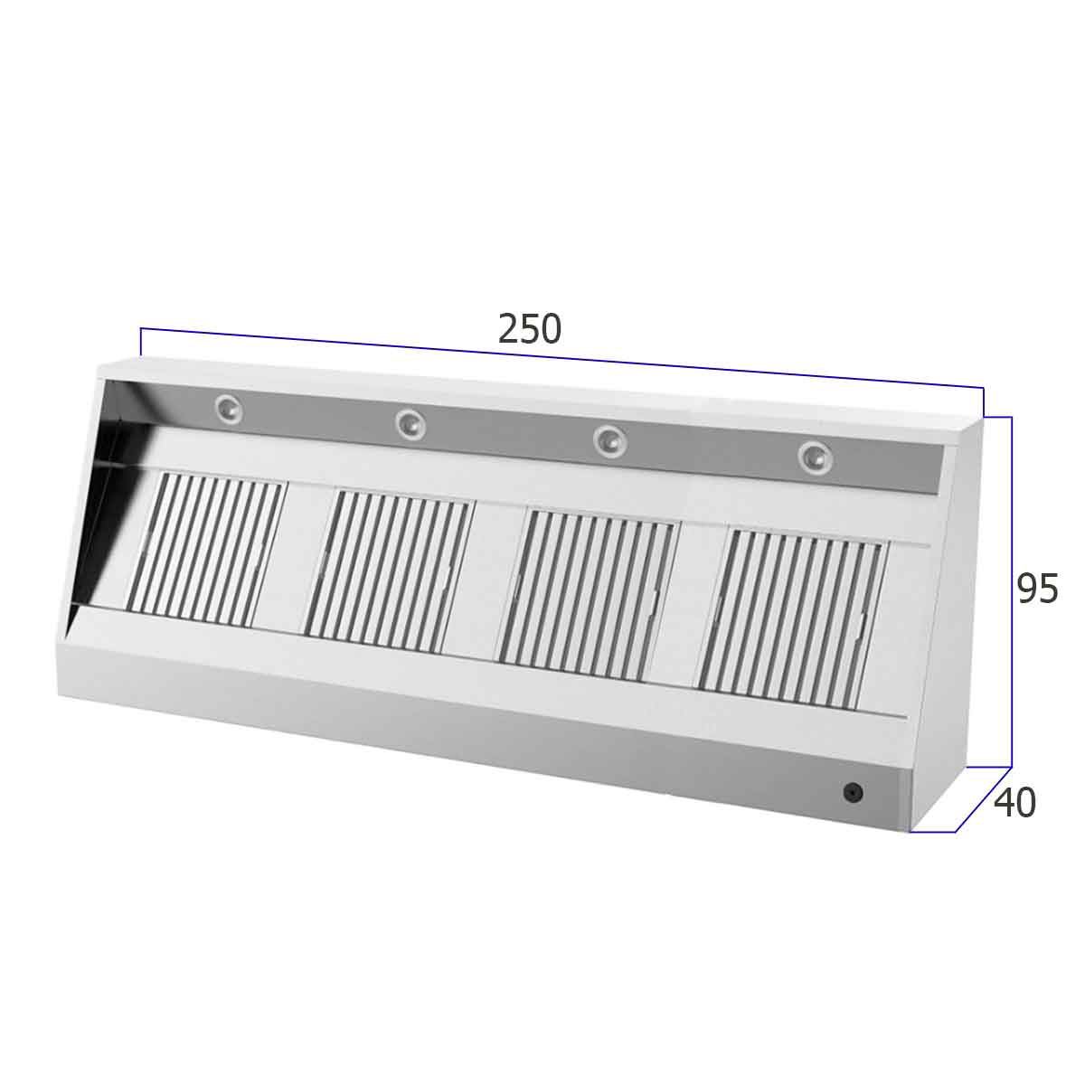 HCB exhaust hood – sloped model – 250 cm – stainless steel