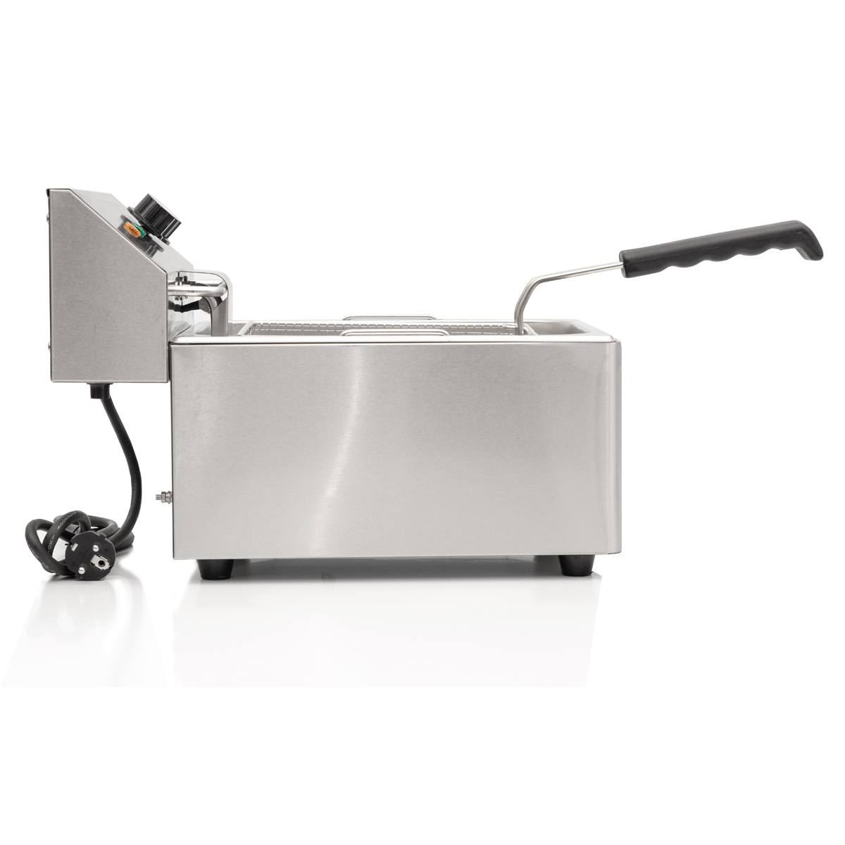 This fryer with a capacity of 5.5 liters is perfect for the professional kitchen. Ideal for frying smaller quantities at once, but the quality does not compromise its size the fryer is perfect for frying different types of food such as fresh chips, vegetables, snacks. Cleaning is an easy job, all parts are easy to remove and because everything is stainless steel easy to clean.