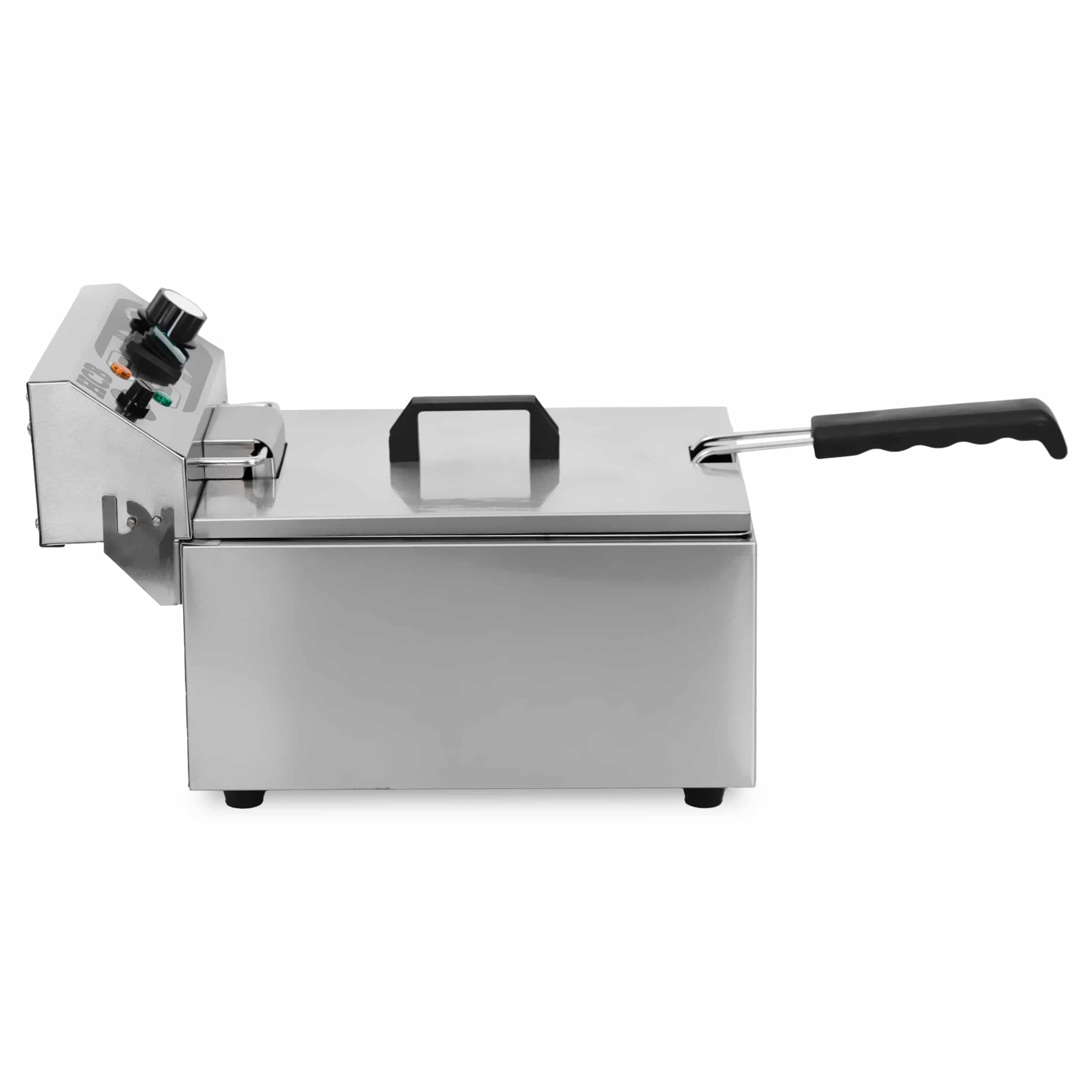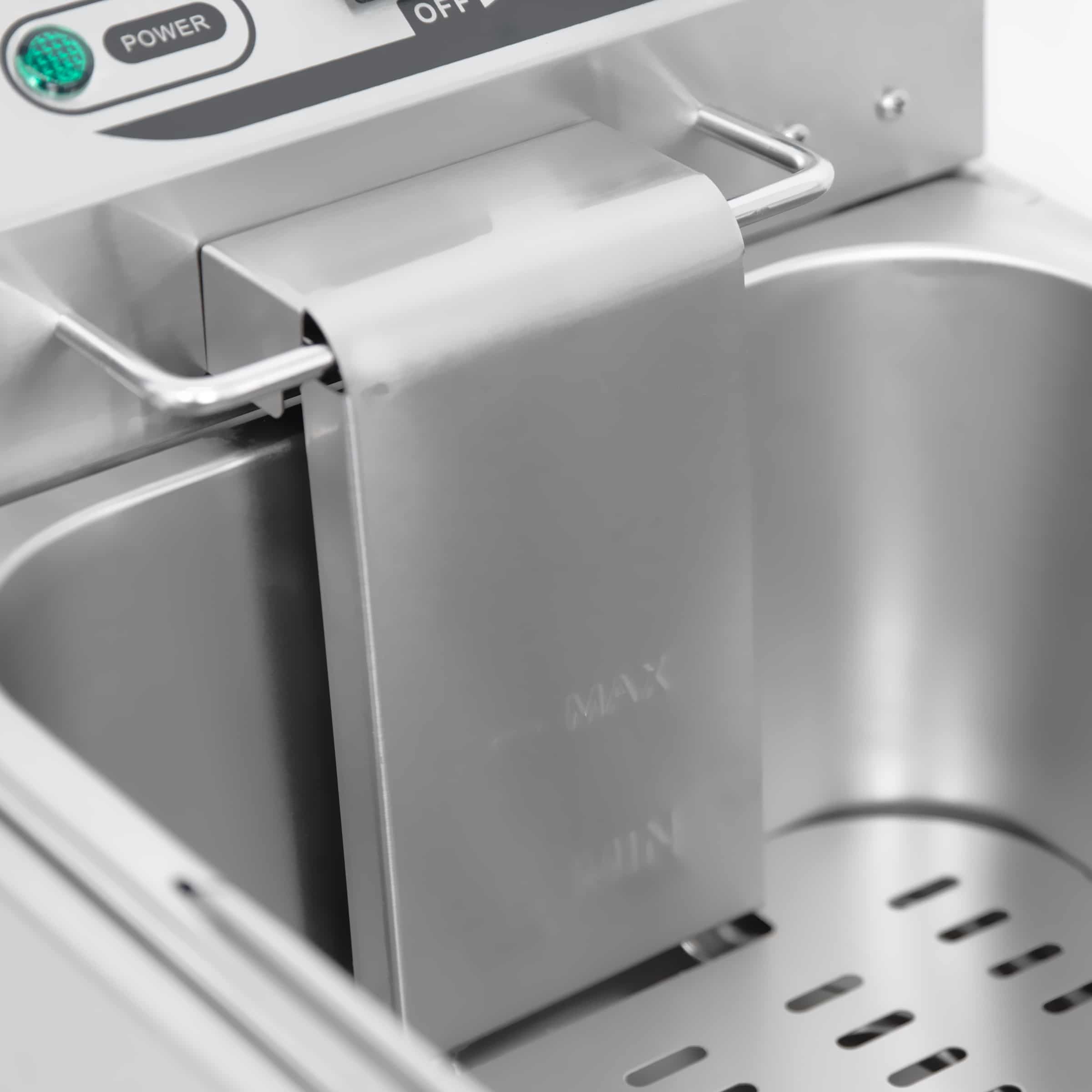 This fryer with a capacity of 6 liters is perfect for the professional kitchen. Ideally suited for frying smaller quantities at a time, but the quality does not compromise its size the fryer is perfect for frying different types of food such as fresh chips, vegetables, snacks. Cleaning is an easy job, all parts are easy to remove and because everything is stainless steel easy to clean.