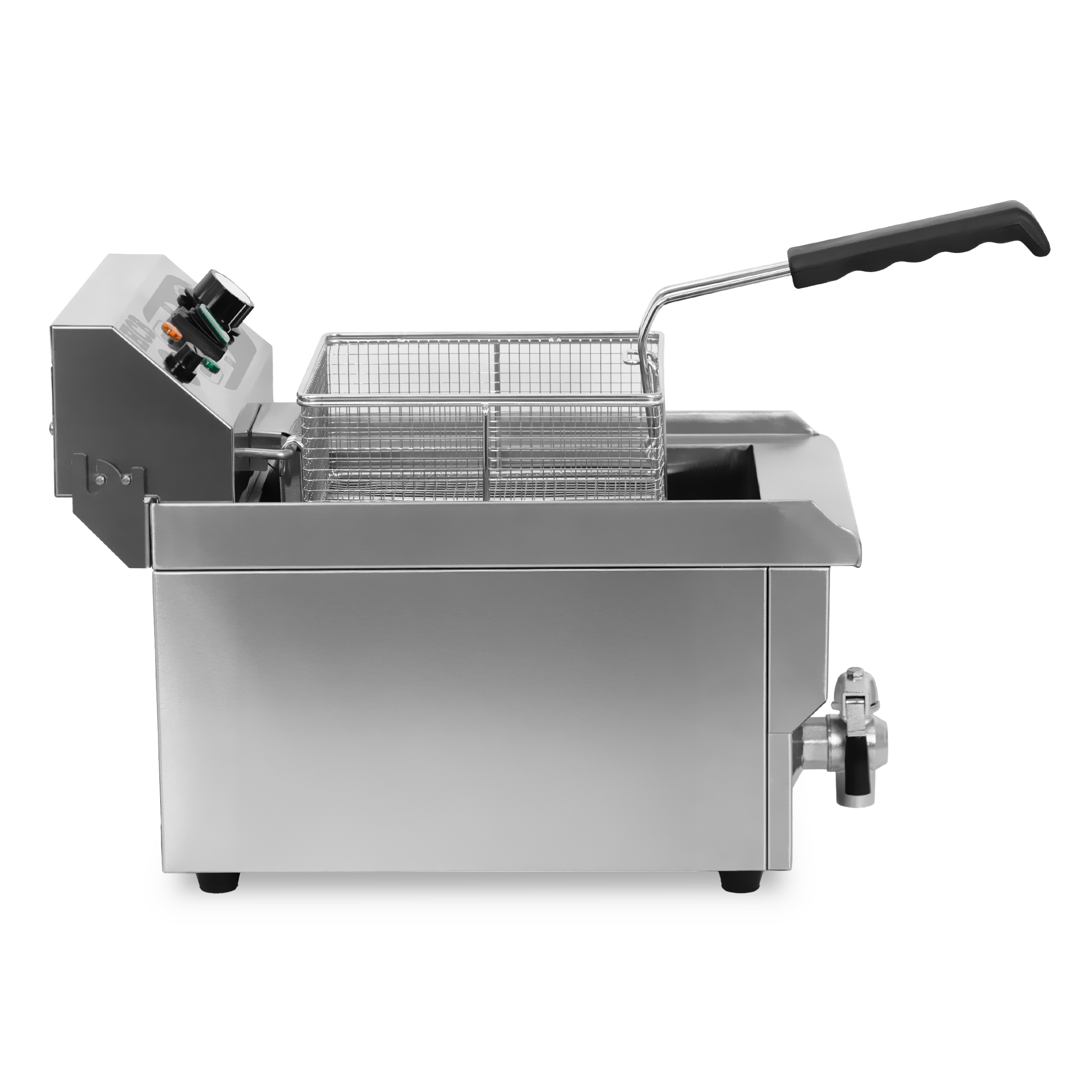 This fryer with a capacity of 8.5 liters is perfect for the professional kitchen. Ideal for frying larger quantities at once, The fryer is perfect for frying different types of food such as fresh chips, vegetables, snacks. Cleaning is an easy job, all parts are easy to remove and because everything is made of stainless steel easy to clean.