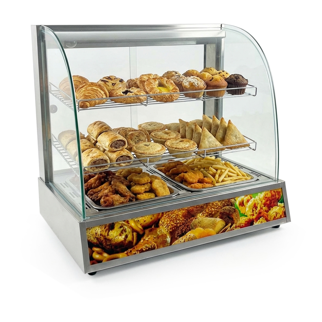 The display case has sliding doors so you can easily replenish your products through the back. This display case is designed for intensive use so especially for busy catering environments. Because the display case can be sealed tightly, it is very durable in use and because of the material it is very reliable and easy to maintain. So it is a top way of keeping your products warm and attractive presentation.