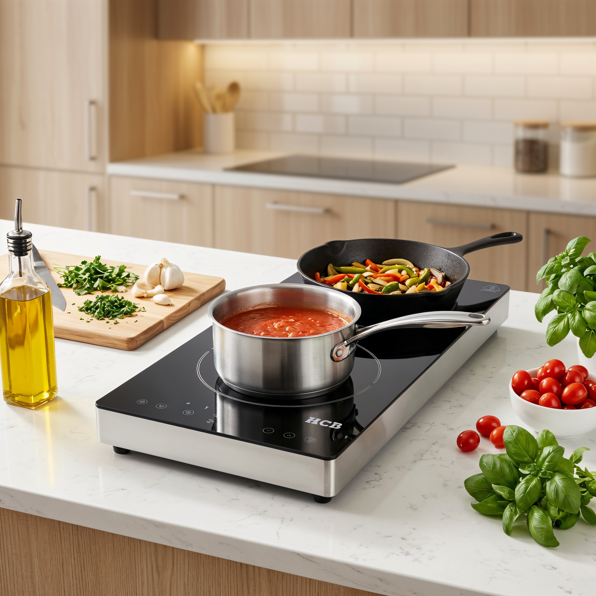 This stainless steel two-burner induction stove is a smart choice for any professional kitchen where speed and convenience are key. The sleek, modern design provides a neat look and fits effortlessly into any setting. Thanks to the intuitive touchscreen controls and clear panel, you will quickly and easily prepare a variety of dishes, even during the busiest times. The cooktop is ready to use immediately and easy to clean afterwards. Ideal for everyday use in restaurants, food trucks or on location: reliable, flexible and always ready for the next order.