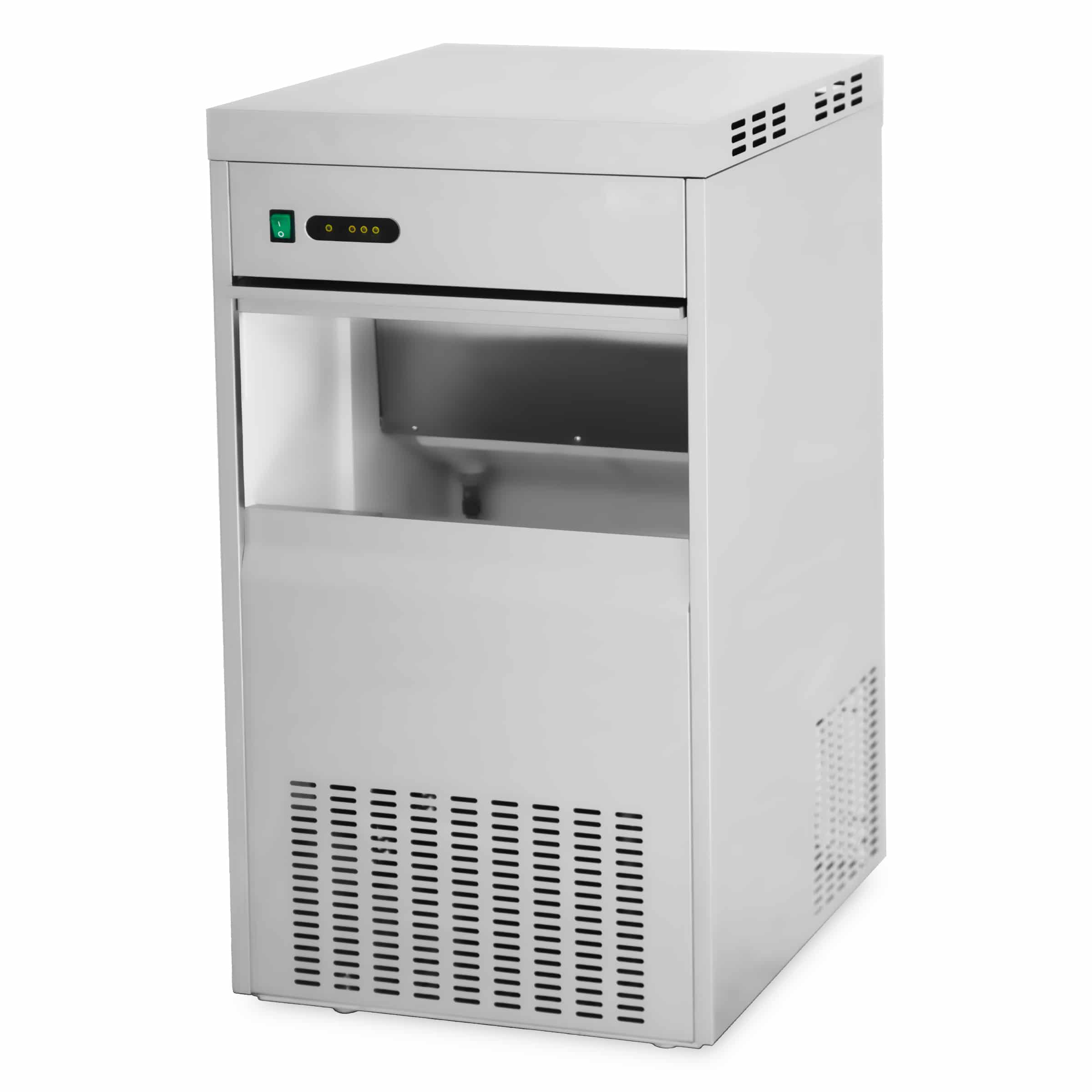 It is designed for everyday use in restaurants, fish shops and catering establishments. Its compact size fits into any kitchen, while its rugged construction ensures years of reliability. The flake ice melts slower than regular ice cubes, keeps products cooler longer and looks more professional. Plus, it is quiet in operation, so your guests won’t be bothered by distracting noises.