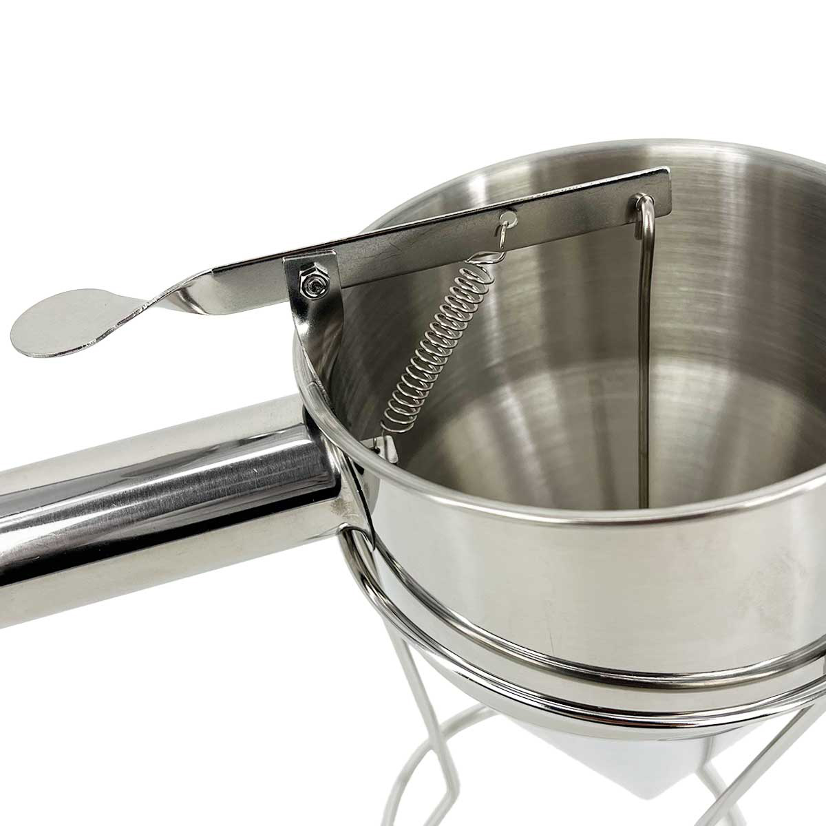 Make the Stainless Steel Portioning Funnel Mash Dispenser, complete with stand, for precise and effortless batter pouring. This dispenser is designed with your needs in mind, with a focus on durability, precision and ease of use.