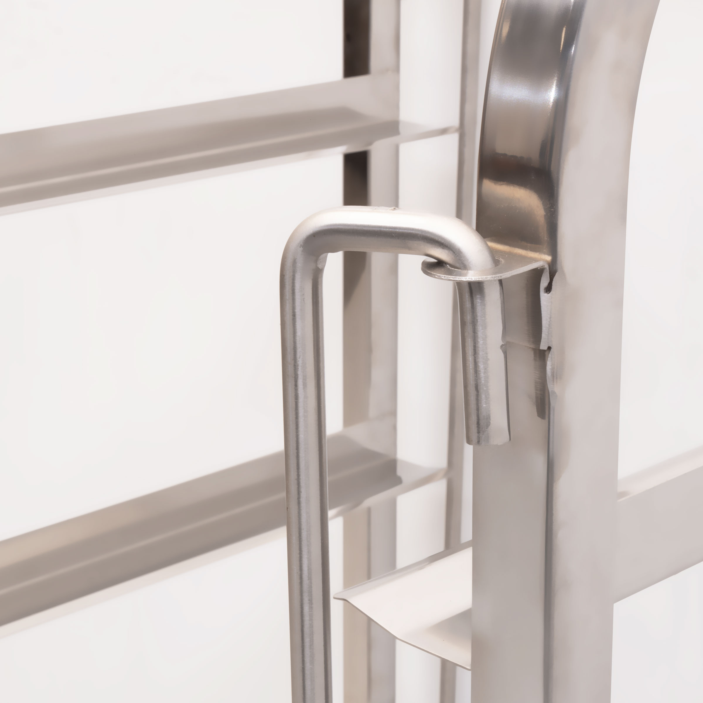 This shelf trolley is made of high quality stainless steel material and provides space for as many as 4 laundry crates measuring 50×50 cm. The distance between the shelves is 20 cm, ensuring maximum storage capacity .