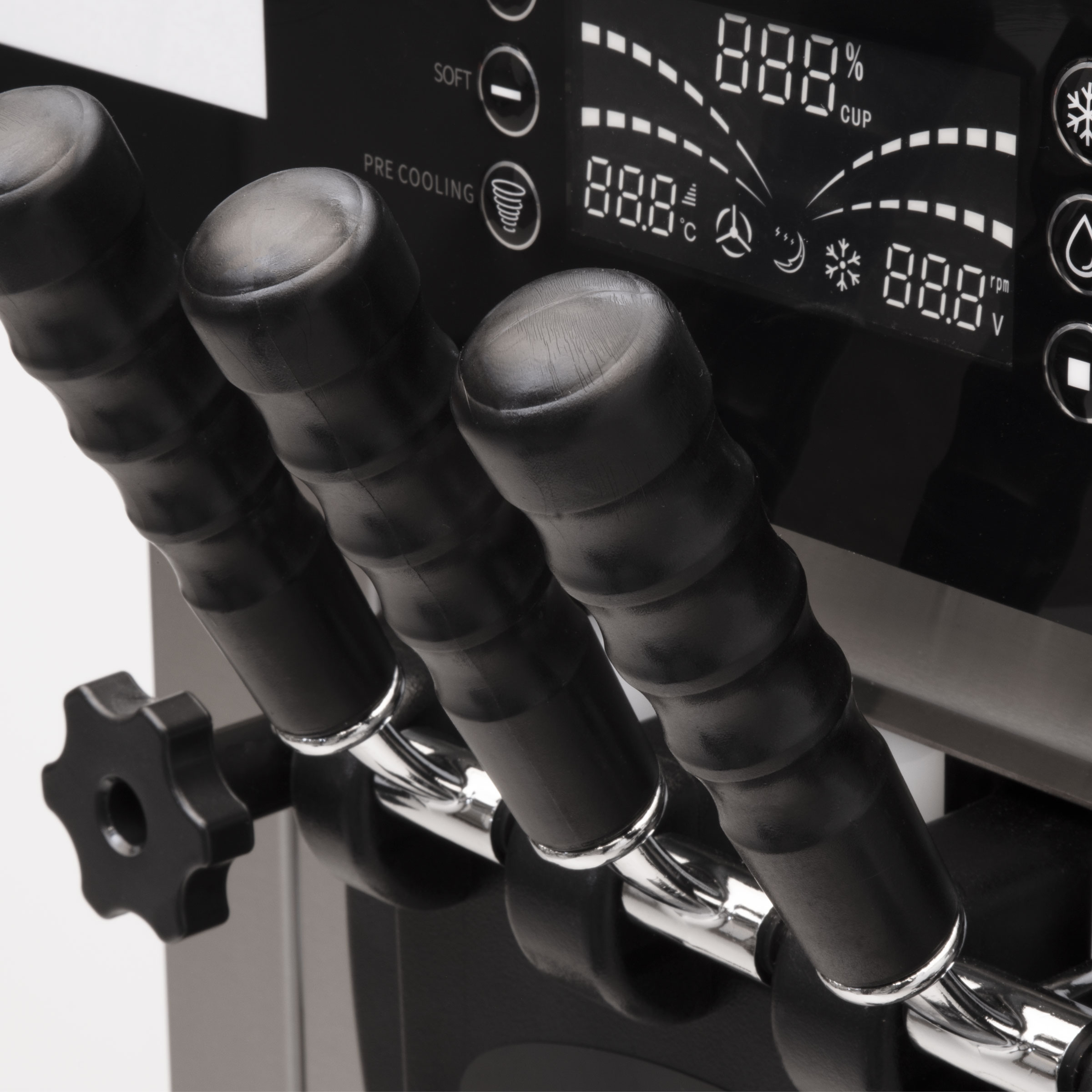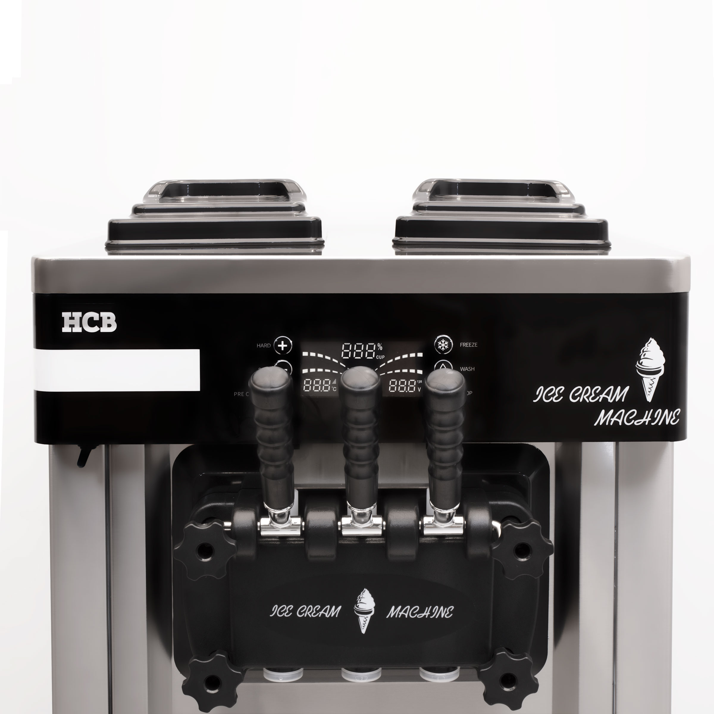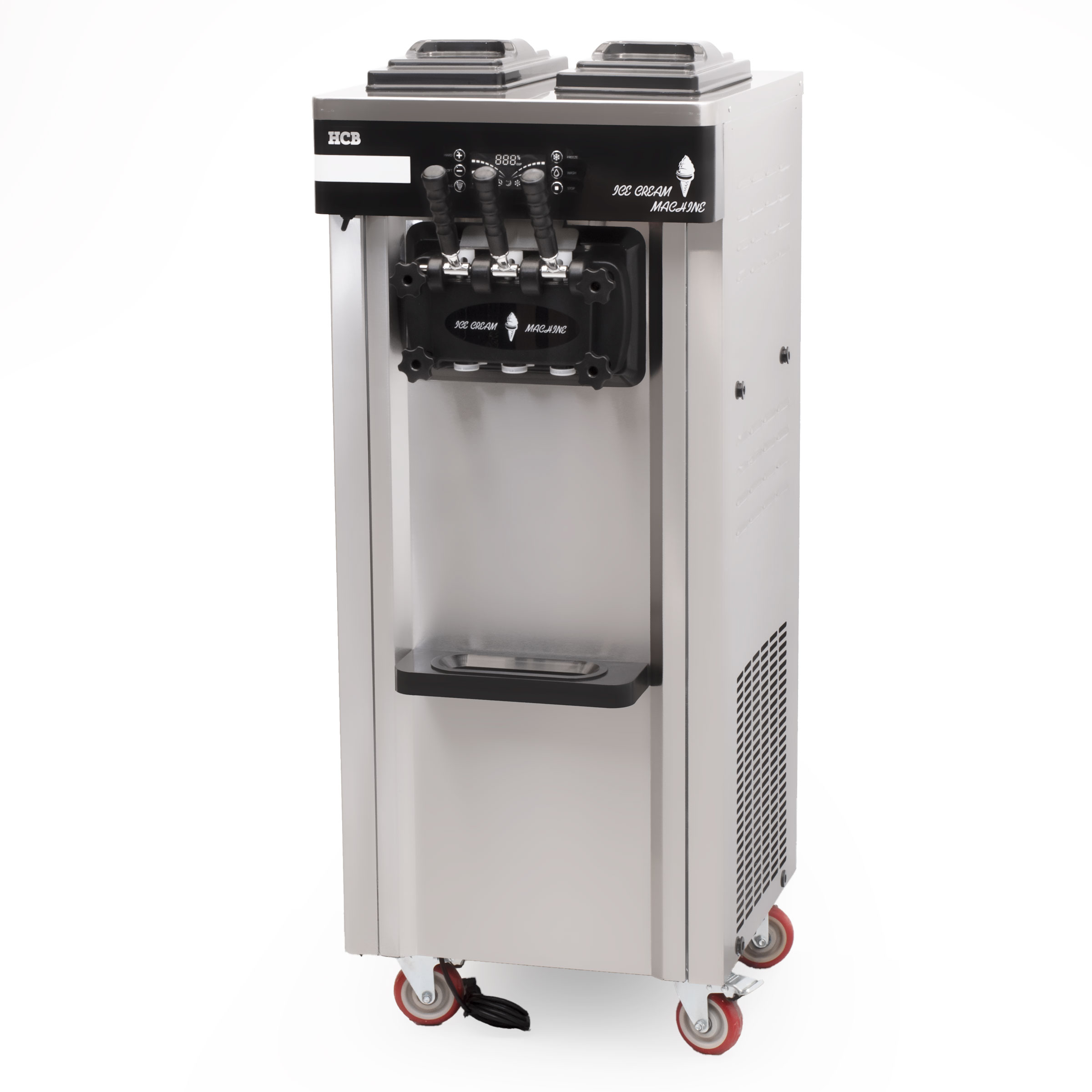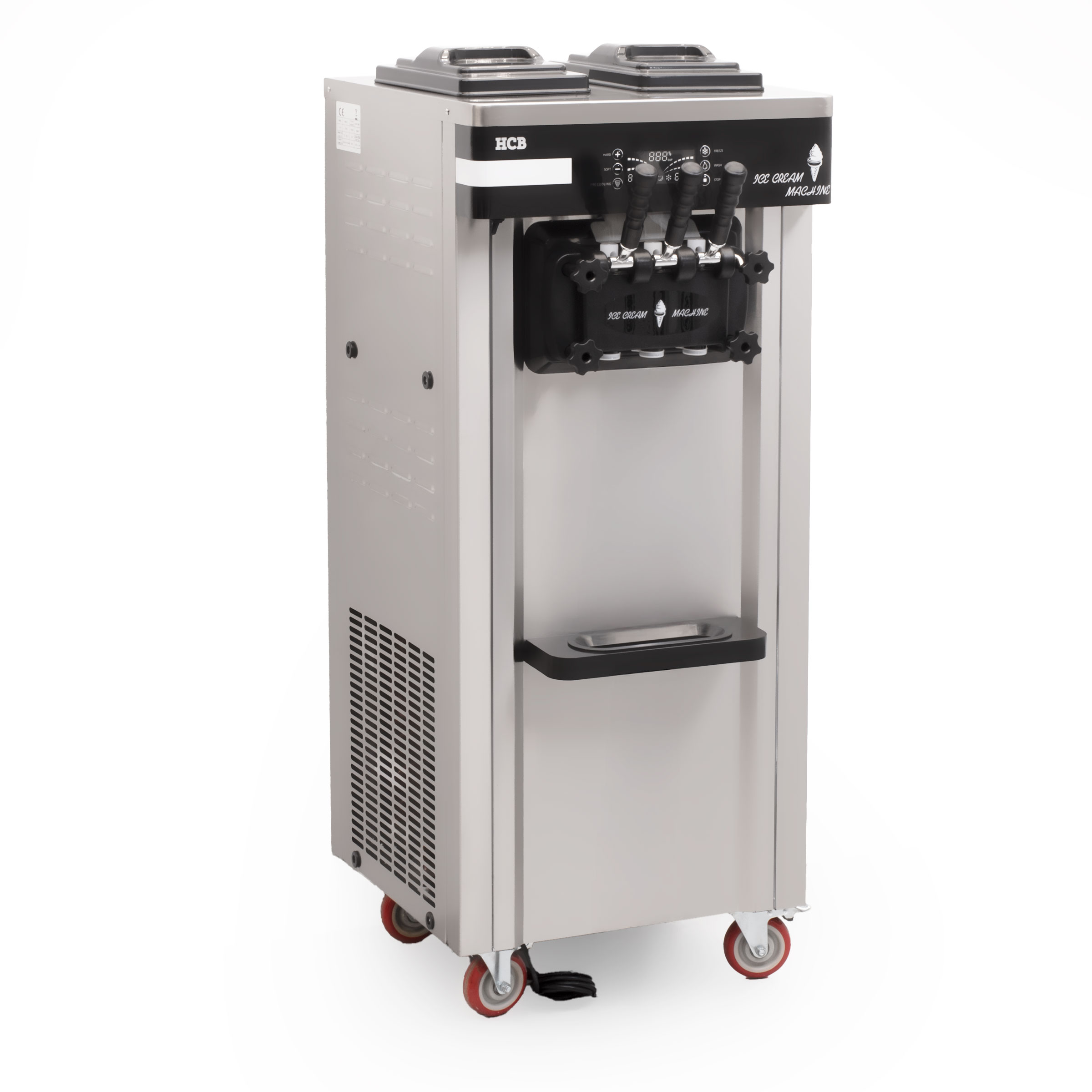 The soft ice cream machine is equipped with a powerful compressor that quickly provides the perfect consistency of ice cream. The machine also has an integrated cooling system that keeps the ice cream at the right temperature and provides a consistency that can be easily served from the machine.