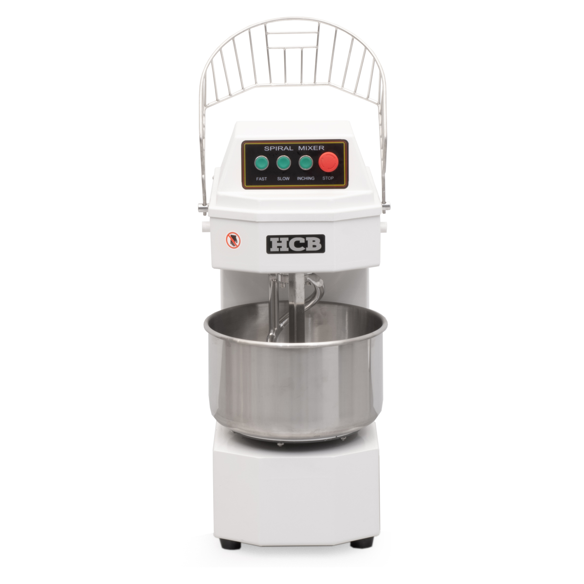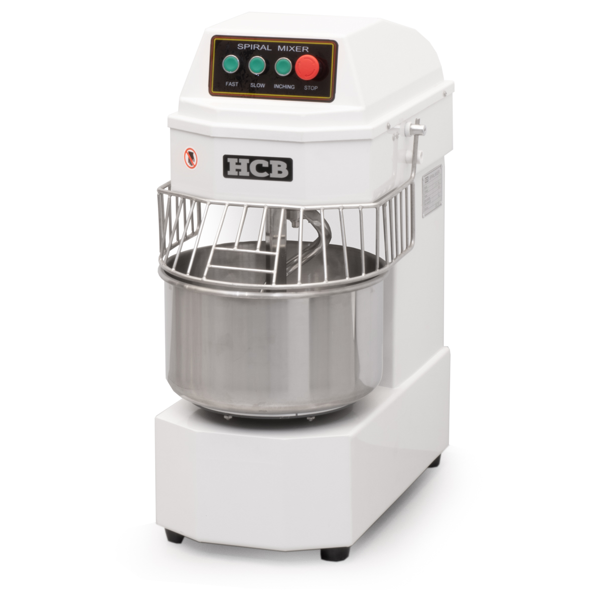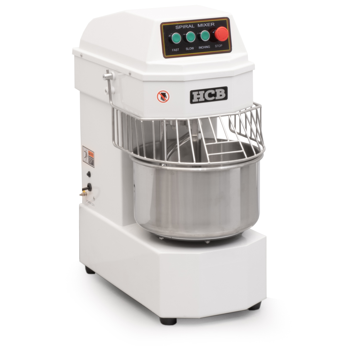 The HCB spiral kneader with a 20-liter stainless steel mixing bowl is designed to knead dough efficiently and thoroughly, ideal for both artisan and commercial bakeries. With its powerful motor and smart safety features, this kneader ensures optimal results without having to compromise on safety or ease of use