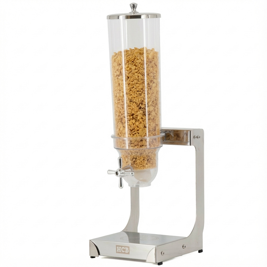 HCB’s Stainless Steel Cereal Dispenser 3.5 liter is the solution for stylish and hygienic presentation of breakfast cereals, granola or nuts at any breakfast buffet or self-service point in the hospitality industry. Thanks to its scratch-resistant reservoir and sturdy stainless steel construction, this dispenser is perfect for intensive, daily use. It also provides a luxurious look at home for breakfast or a festive brunch buffet.