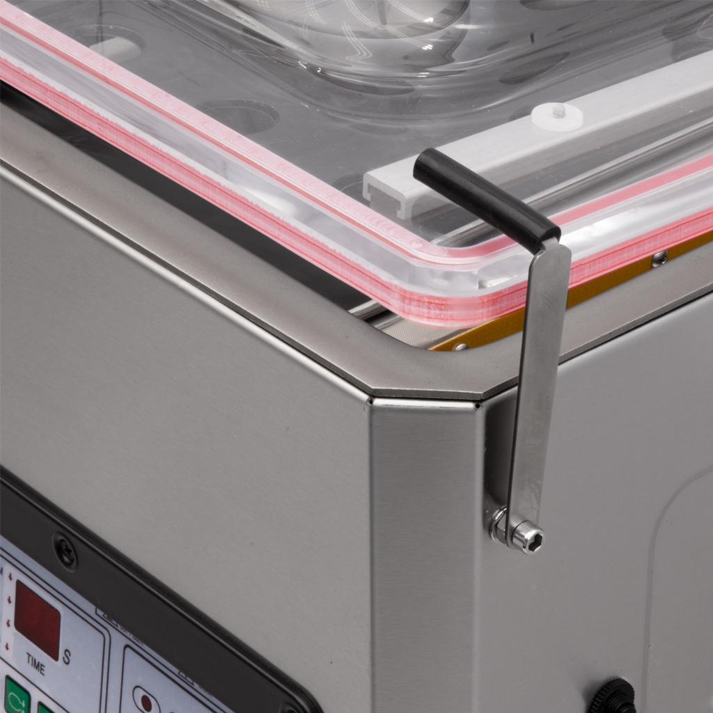The vacuum sealer is equipped with a powerful vacuum pump that provides fast and efficient vacuum sealing. As soon as you close the valve, the machine sucks the air out of the package, then automatically seals it to create the perfect vacuum environment. The intuitive control panel makes it easy to select desired settings, such as vacuum and seal time, giving you complete control over the vacuum packaging process.