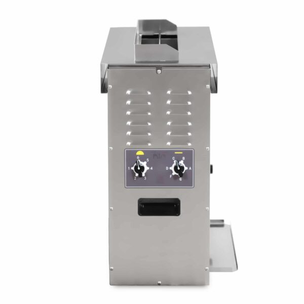 This professional walk-through toaster is the ideal solution for anyone who wants to serve perfectly toasted bread quickly and consistently. Thanks to its clever design, both sides of the bread turn a beautiful golden brown in one go, which not only saves time but also ensures an attractive presentation. Even during the busiest times, the toaster continues to perform reliably, so you can always keep up to speed. The sleek stainless steel design fits into any professional kitchen or canteen and makes cleaning surprisingly easy. In short, a versatile powerhouse that should not be missing in any catering kitchen.