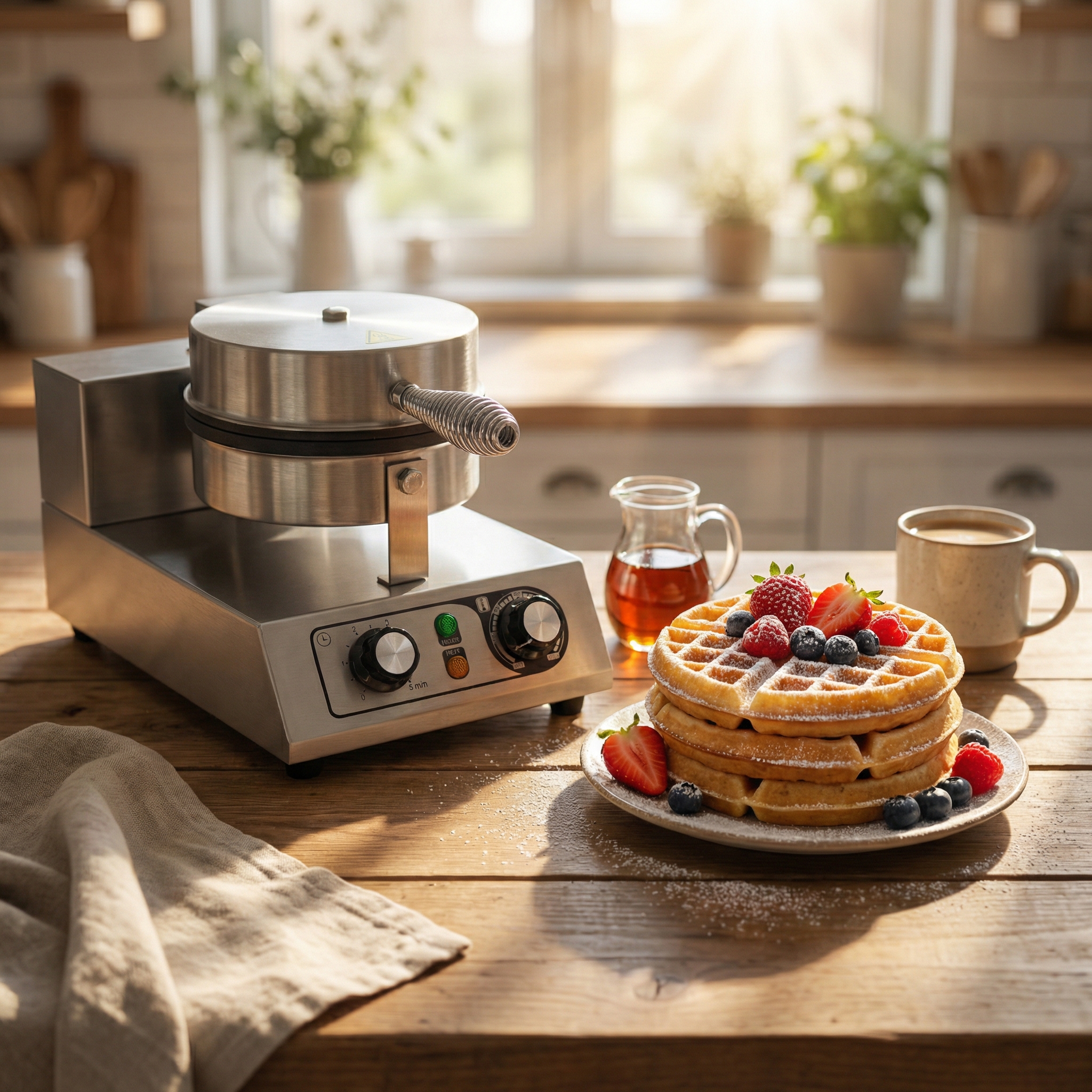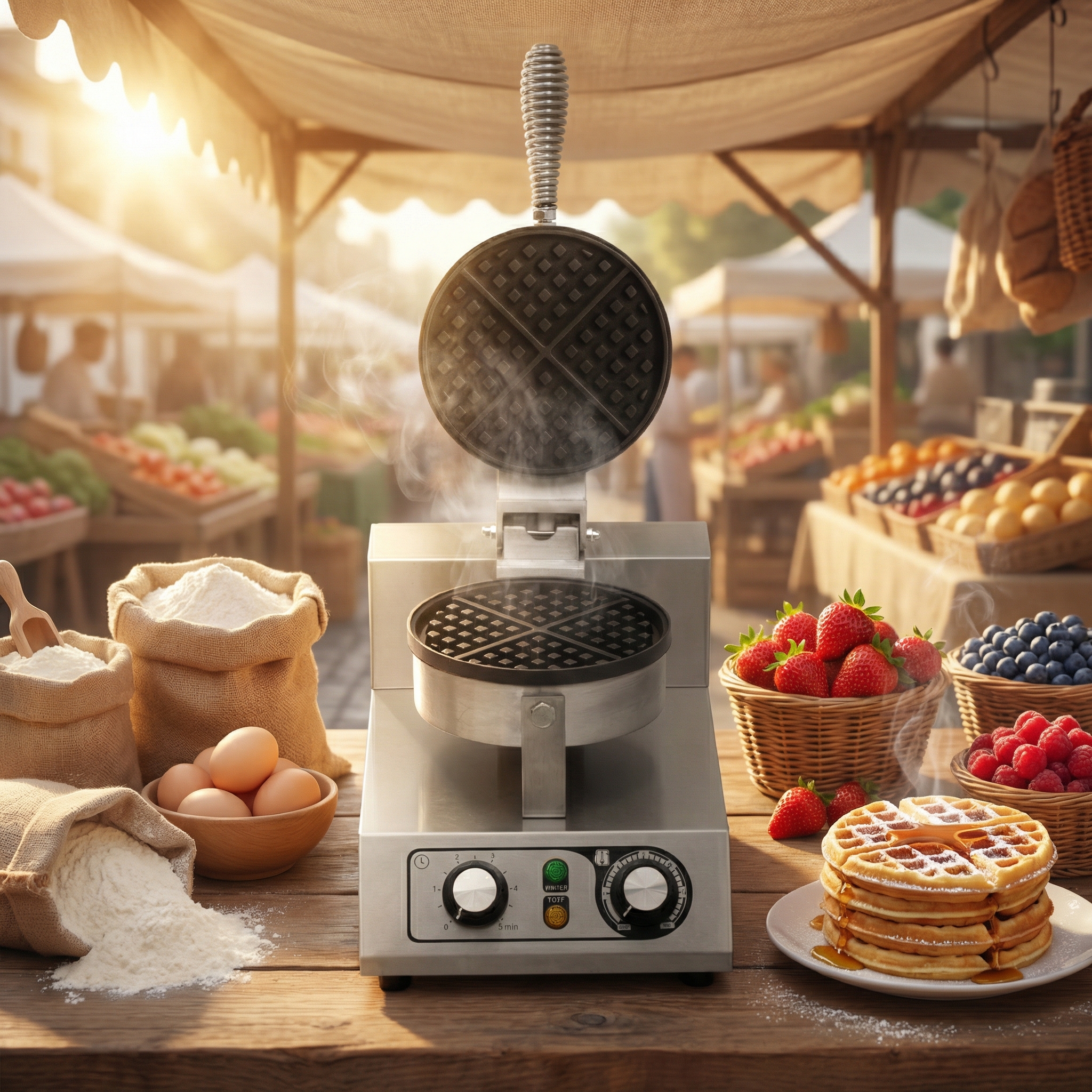 HCB Waffle iron – round waffles – timer – 230V – stainless steel