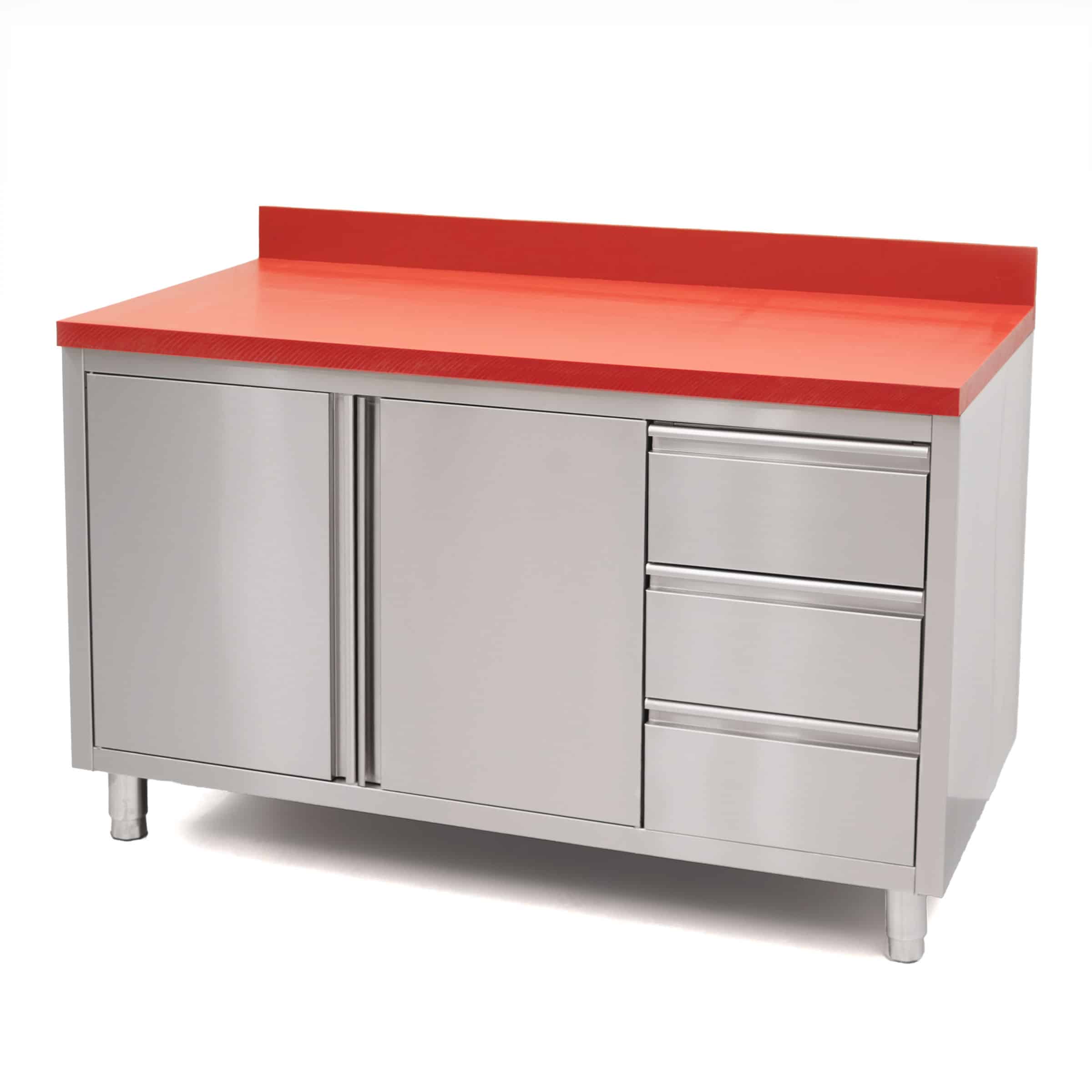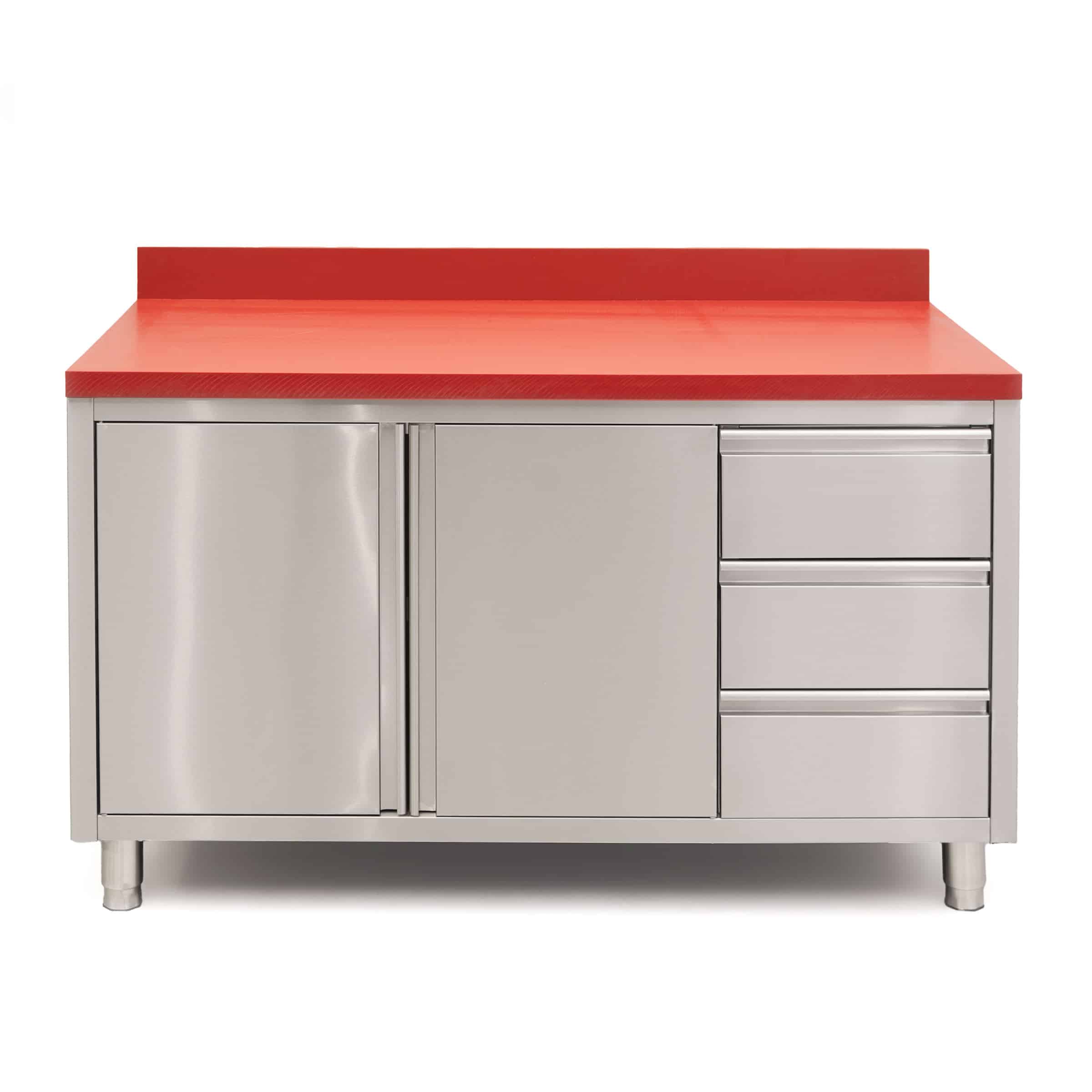HCB Work cabinet – cutting table – folding doors – drawers – 140 cm – stainless steel – Polyethylene