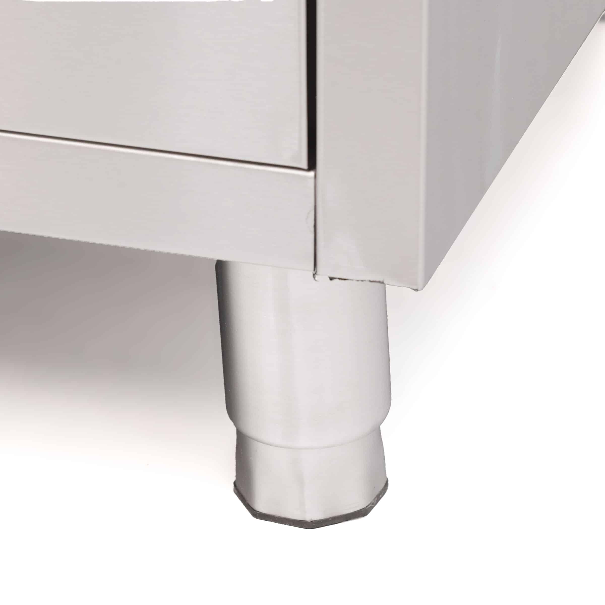 To work safely, optimally and efficiently in your professional kitchen, stainless steel work cabinets are ideal. Equipped with an extra strong stainless steel frame, sturdy legs and tightly finished corners, this HCB brand work cabinet is therefore the perfect choice! The work cabinet is extremely suitable for food preparation and with a Polyethylene worktop safe and hygienic to use. Furthermore, due to its sturdiness and load-bearing capacity, the table is also suitable for placing kitchen equipment on it.