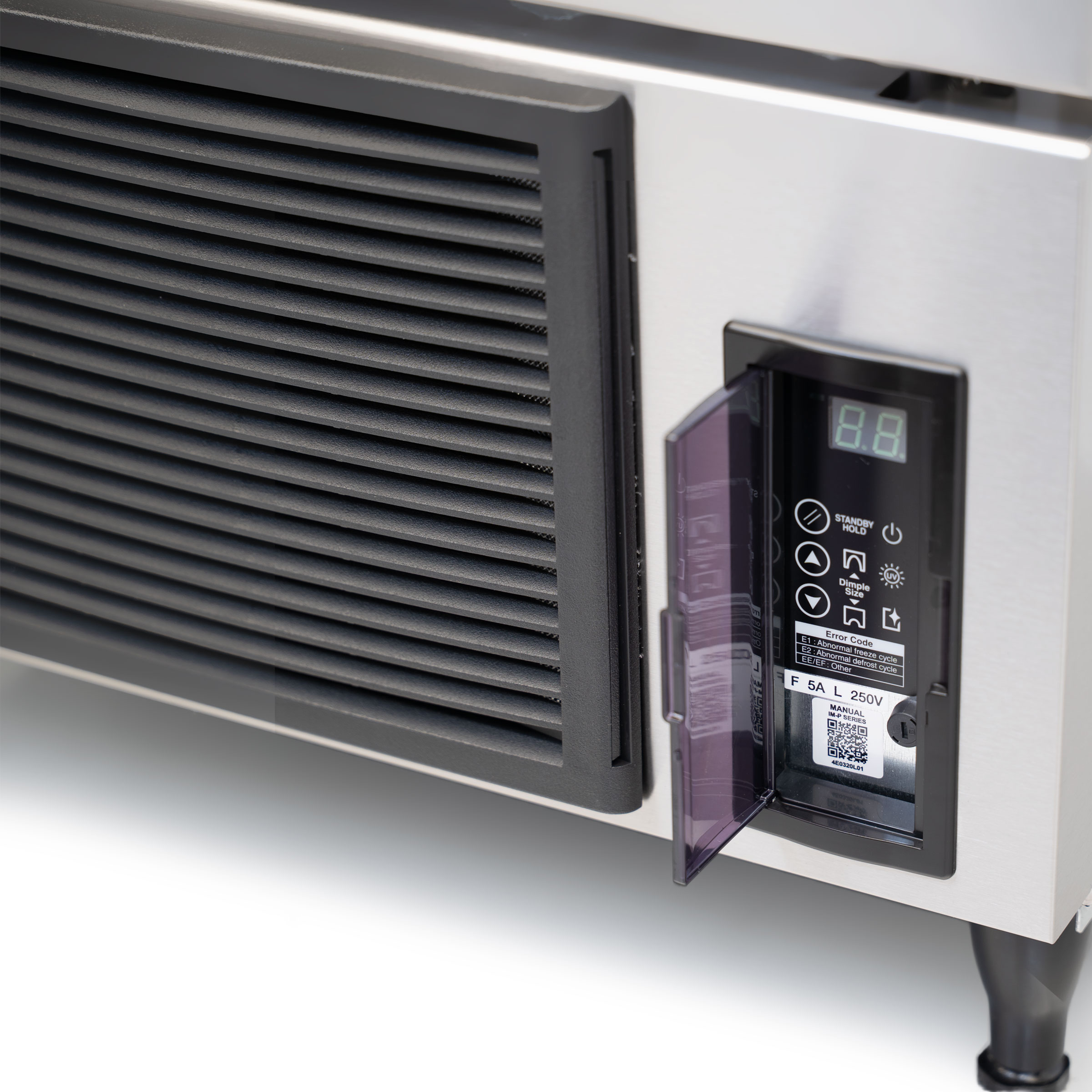 The Hoshizaki ice cube machine is the reliable choice for hospitality operators who count on consistent quality and performance every day. This high-quality machine produces crystal clear ice cubes that melt slowly – perfect for cocktails, soft drinks or product presentation. The closed water system ensures hygienically clean ice, while the energy-efficient design contributes to lower operating costs. The robust stainless steel construction makes the machine ideal for intensive use in busy kitchens or bars. Even at high ambient temperatures, the output remains stable, so you’ll never run out of ice even at peak times.
