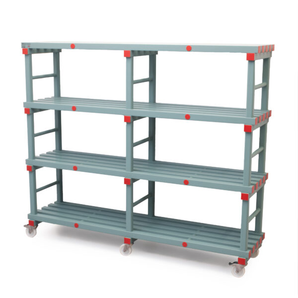 Het grote voordeel van dit model is dat hij verrijdbaar is. Je rijdt hem makkelijk naar je werkplek om aan te vullen, en zet ’m daarna weer strak terug. Dat scheelt gesjouw, houdt je gangpaden vrij en maakt schoonmaken onder/achter het rek veel makkelijker. De stelling is daarnaast ontworpen als een stabiel opslagsysteem met hoge draagkracht per schap, waardoor je ook zwaardere kratten en voorraad netjes en overzichtelijk kwijt kunt.