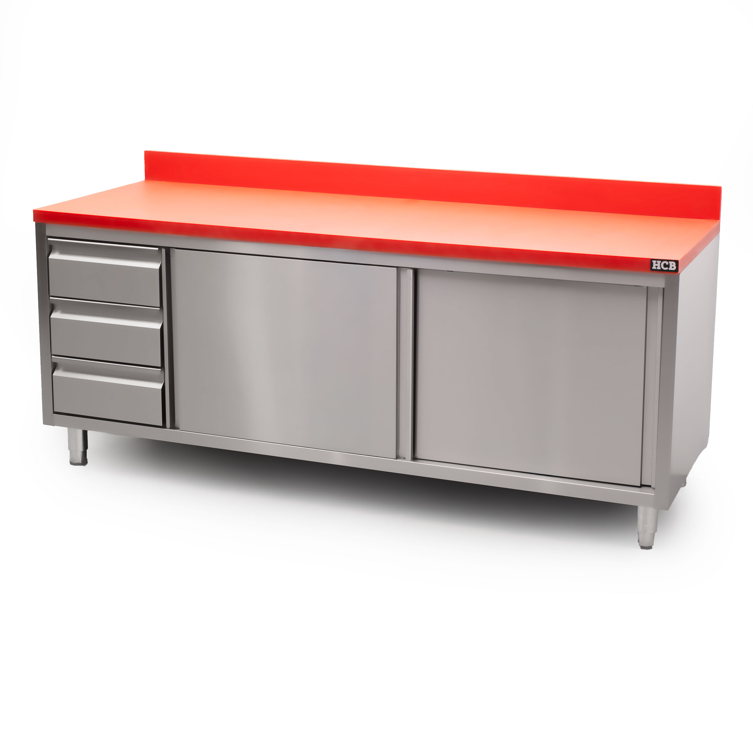 Werkkast – snijtafel – schuifdeur – lades – 200 cm – RVS – Polyethylene